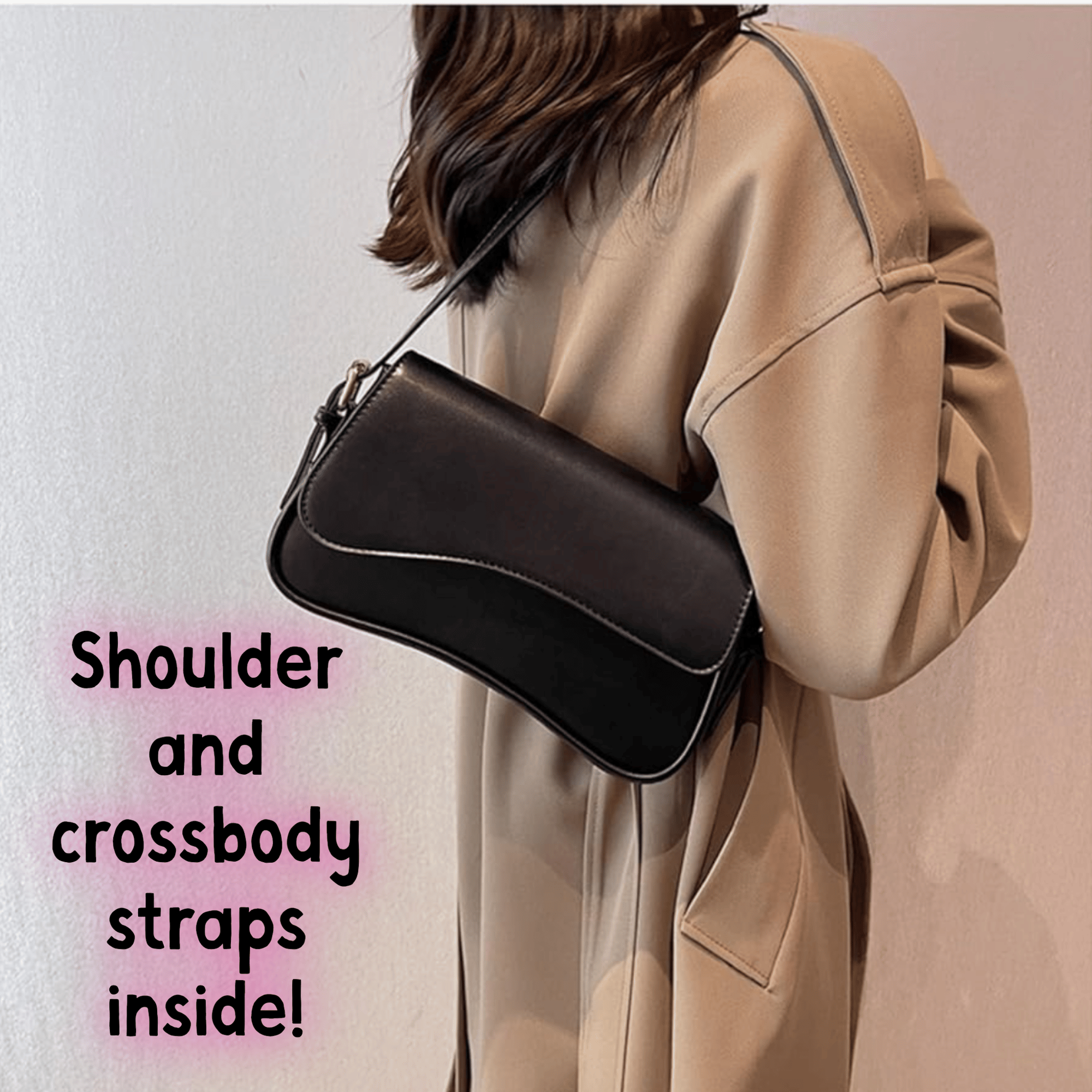 Details: The 2 removable straps will be inside the bag (shoulder strap and crossbody)